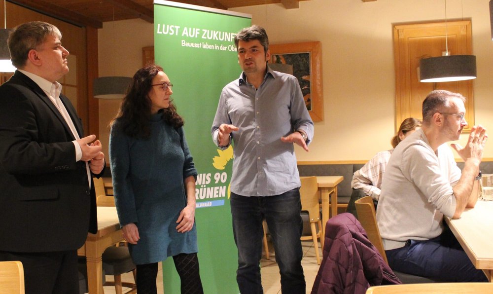 Nach den Reden entspann sich eine Diskussion mit den Zuhörern, unter denen auch einige ohne grünes Parteibuch waren. Die Themen reichten von Landwirtschaft und Ernährung über das Gesundheitswesen, die Präsenz von Abgeordneten im Plenum bis zu den aktuellen Konflikten von Windkraft-Projekten und der Bundeswehr.