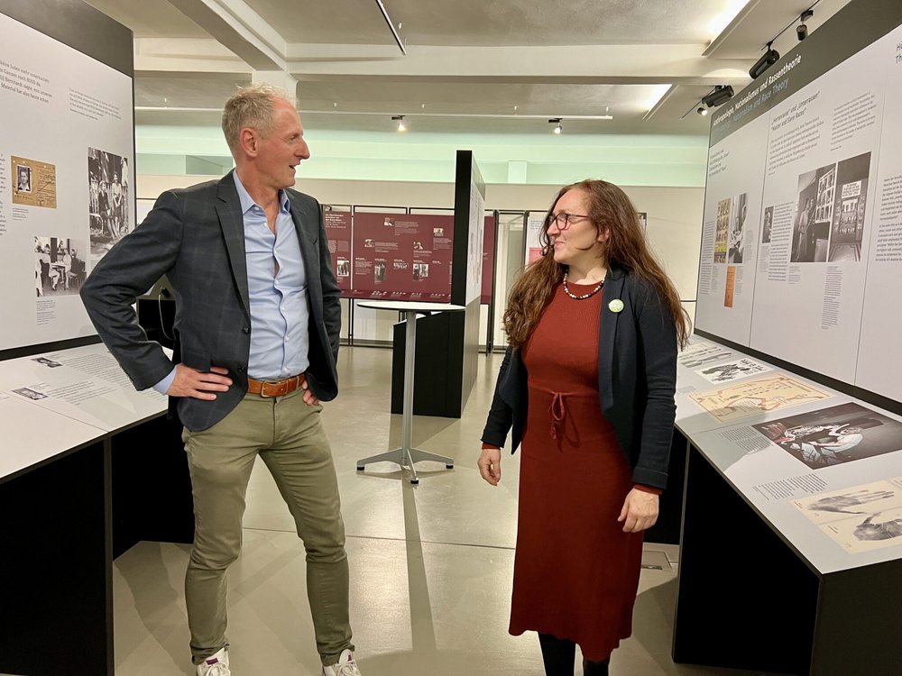 Anne Droste zeigt sich nach einem Rundgang mit den Ehrengästen erschüttert angesichts der eindringlichen Darstellung des Versuchs nationalsozialistischer Wissenschaftlerinnen, an 565 Männern, Frauen und Kindern aus dem Ghetto Tarnów Rassenforschung zu betreiben. Dr. Margit Berner, Kuratorin und Mitarbeiterin des Naturhistorischen Museums Wien, hat vorher in einem Kurzvortrag beschrieben, wie sie selbst zu den Fotos der Juden aus Tarnów gekommen ist und wie sie begonnen hat, nach den Menschen auf den Bildern zu suchen.