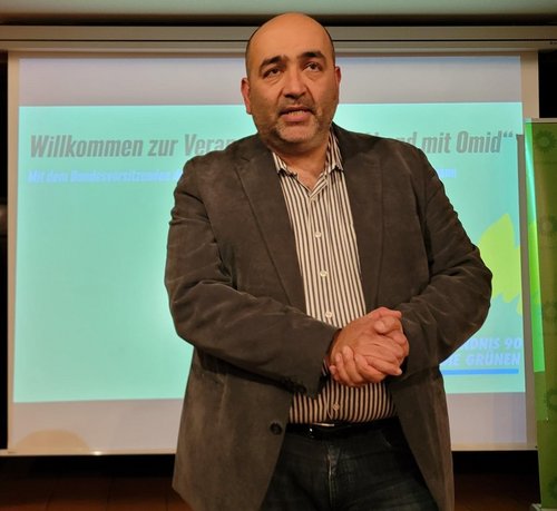 Organisiert von MdB Tina Winklmann und den Kreisverbänden Schwandorf und Cham trafen sich Grünen-Mitglieder aus der nördlichen Oberpfalz bei der Brauerei Jacob in Bodenwöhr zu einem „Abend mit Omid“. Dabei hatten auch die Kandidat*innen für die Landtags- und Bezirkstagswahl Gelegenheit, sich zu zeigen. Aus dem Stimmkreis 308 (Weiden-Neustadt/WN) waren die beiden Direktkandidat*innen Laura Weber (Landtag) und Ali Zant (Bezirkstag) vertreten, außerdem Landtags-Listenkandidat Harald Neumann.
